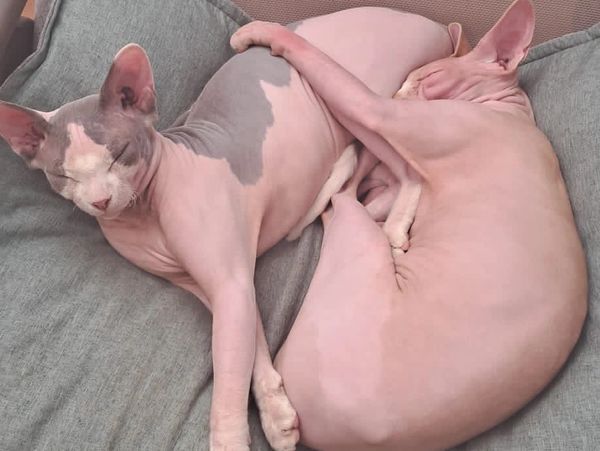 Even though Sphynx is considered “hairless” cats, this is not always true. They can have some fuzz similar to peach fuzz on their bodies. This can come and go throughout their life.