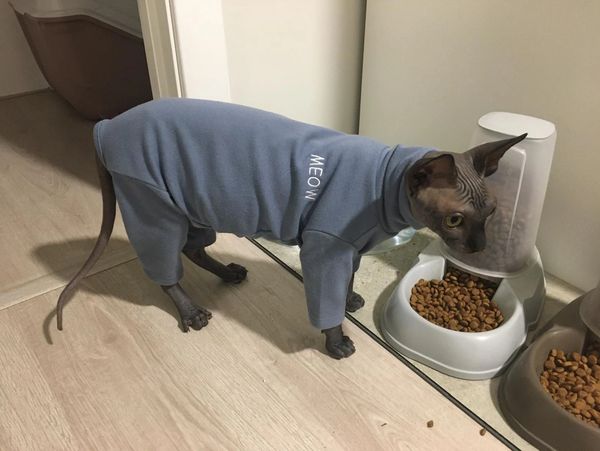 Sphynx have a higher metabolism than most cats because they need to work a little harder to keep their body temperature warm due to being hairless. It is important to keep quality dry food and freshwater available at all times so they can eat as much as they need to. I also recommend a good quality wet kitten food two times a day as well when they are young.